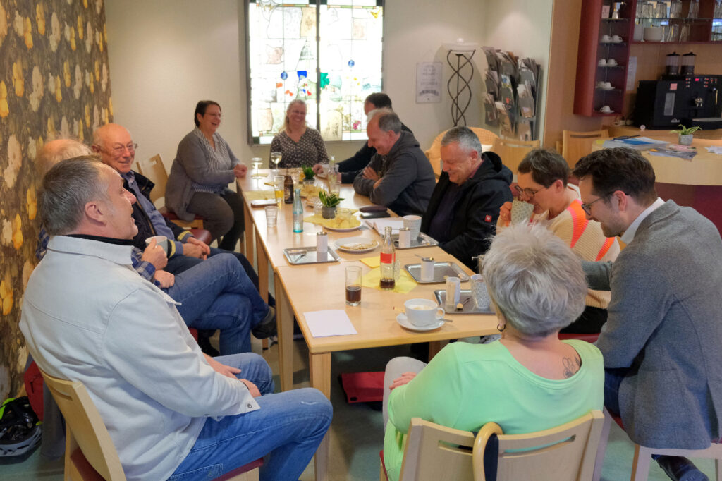 Gewerbetreibende und Bürgermeister beim Austausch in lockerer Runde